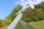 Cette sculpture composée d’une croix élancée et courbée rappelle la première croix de bois érigée au sommet du mont Salettin, lui-même représenté par la forme arrondie du haut des ailes d’un ange. Les ondulations ornementées du bas des ailes font référence aux flots de la rivière du Lièvre, à la fois source de vie et de destruction pour la collectivité. Le 26 avril 1908, une partie de la rive ouest glisse dans la rivière, créant un gigantesque raz-de-marée d’argile, de débris et de glace qui déferle sur le village situé sur l’autre rive. Trente-quatre personnes perdent la vie, dont vingt-cinq enfants. Ce drame a profondément marqué l’imaginaire collectif et la mémoire des Salettois. Un banc vous invite à vous recueillir, à prier ou à méditer.